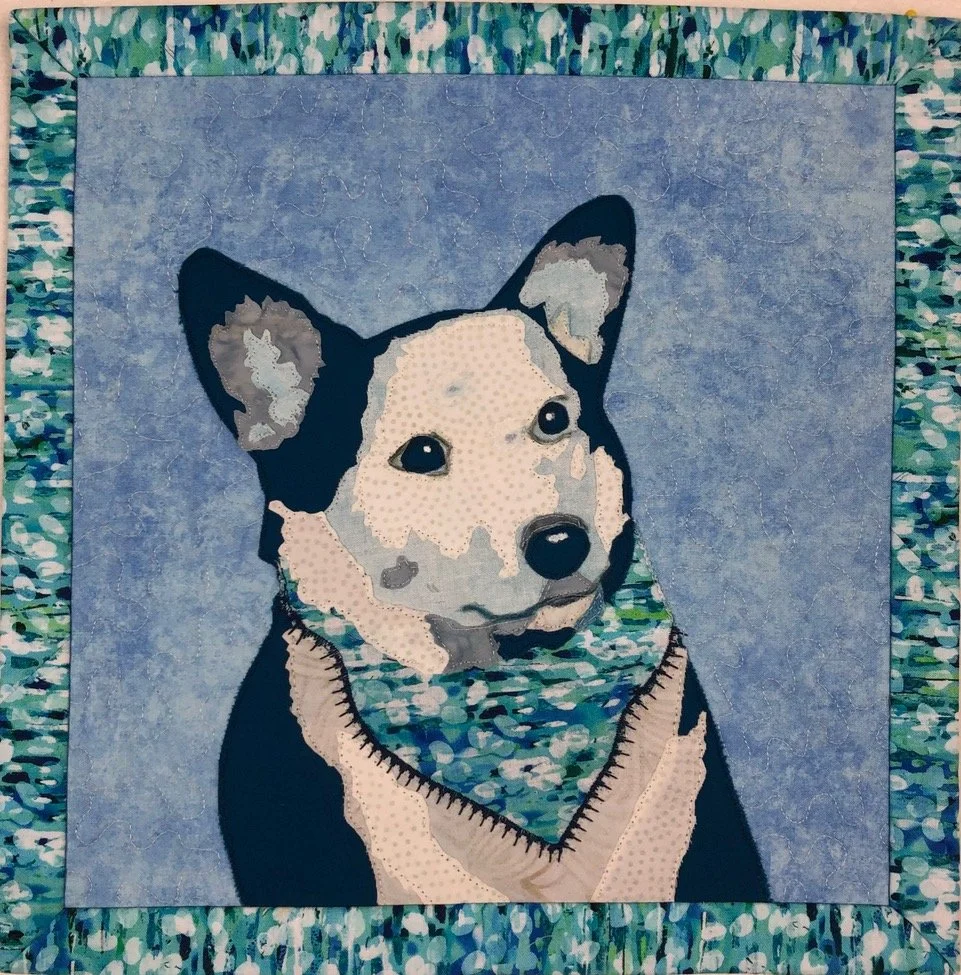 “CORGI IN OCEAN HUES” by Beth Harkenrider