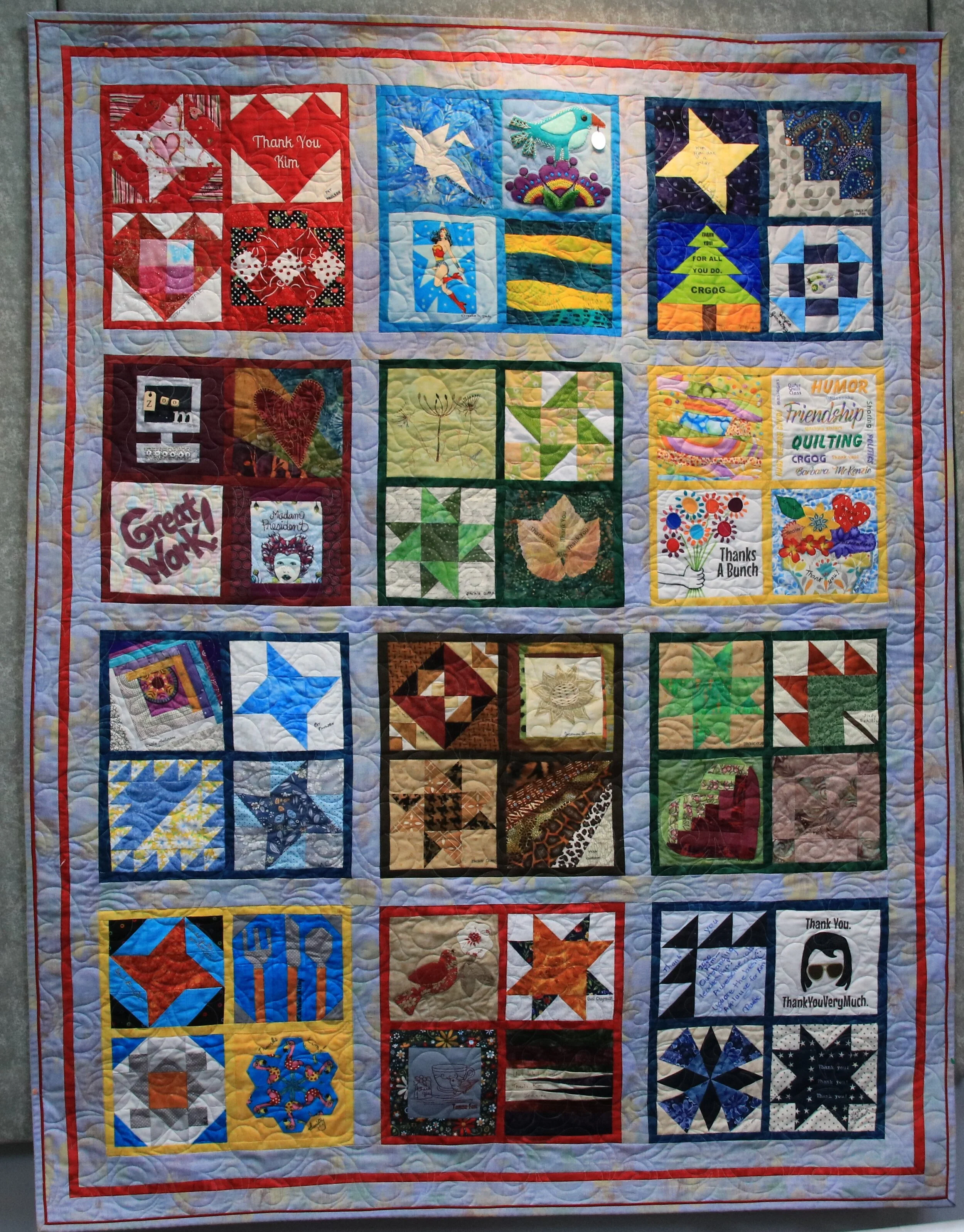 Front and back of the “Thank You” quilt presented to outgoing President Kim Vogel.